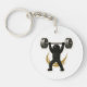 Durable keychain featuring a weightlifter with barbell design.
