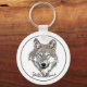 This aluminium keychain is shown with a Yellowstone wolf print design.