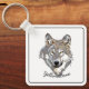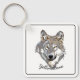 This aluminium keychain is shown with a Yellowstone wolf print design.