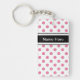 Keychains with names you can personallize for girls or women in this girly fun two sided pink polka dot acrylic monogram keychain that lets you carry your keys in style. Pink polka dots make a nice pattern that looks chic and stylish.