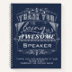 The perfect way to show your appreciation to a keynote speaker at your event or group. This stylish notebook shows the message 'Thank you for being an awesome Speakerr - or change the name to suit your terminology. In dark blue and white, this stylish typography design makes a modern and eye-catching way to say thanks.