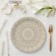 Khaki and White Ornamental Mandala Pattern Paper Plate