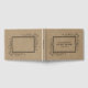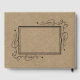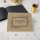Khaki faux linen texture with a black vintage frame with heart accents and customisable black typography.