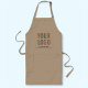 Customize your own branded apron online with your company logo, business tagline, and website address, or other custom text. This is a long khaki apron with pockets made of poly-cotton twill. Short length apron and kid size are also available. Promotional aprons can advertise your business as uniforms for employees, wait staff, and as client gifts. Available in white, khaki, and yellow. No minimum order quantity and no setup fee.
