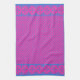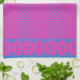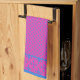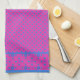 A bold and stylish Kitchen Towel or Tea Towel, with a bright pattern of different sized Pink and Blue dots on a Magenta background.