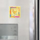 You will love this adorable and colourful yellow chicken art refrigerator magnet. Chick Power is original hand painted art featuring a series of sassy chicks having fun. “Kick up Your Heels” features a chick kicking up her heels wearing a purple bead necklace, holding a green and fuchsia pink striped purse and wearing blue pump shoes with pink dots. She is on a yellow background surrounded by the words “Chick Power” at the top and “Kick Up Your Heels” at the bottom. The entire design is framed by a whimsical serpentine border created in yellow, green, fuchsia, and other colours. Fully customisable magnet.