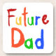 Future Dad T-shirts, mousepads, bags, cards, stickers, mugs, pillows, and other future dad apparel and gifts with primary colours kid style drawn text design.