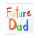 Future Dad T-shirts, mousepads, bags, cards, stickers, mugs, pillows, and other future dad apparel and gifts with primary colours kid style drawn text design.