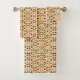 Kid-themed towel and washcloth set with playful cartoon animals, including lions and elephants, in bright colors on a beige background, evoking a fun, cheerful mood.