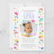 Celebrate the magic of turning one with these cute and colourful party invitations! A fun design personalised with your child's photo and lots of rainbows, hearts and stars. All the text can be customised, so you can include the information you want. The all-important birthday age is repeated throughout the pattern and also on the back, along with big rainbow stripes. This custom card is perfect for kids' 1st, 2nd, 3rd, 4th or 5th milestone birthdays and comes in a bright and pastel colour palette of pink, red, yellow, green, blue and white. ● With thanks to Yan-Krukau for the placement photo.