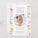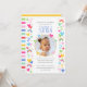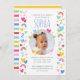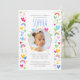Celebrate the magic of turning two with these cute and colourful party invitations! A fun design personalised with your child's photo and lots of rainbows, hearts and stars. All the text can be customised, so you can include the information you want. The all-important birthday age is repeated throughout the pattern and also on the back, along with big rainbow stripes. This custom card is perfect for kids' 1st, 2nd, 3rd, 4th or 5th milestone birthdays and comes in a bright and pastel colour palette of pink, red, yellow, green, blue and white. ● With thanks to Yan-Krukau for the placement photo.
