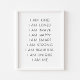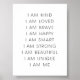 A "Kids Affirmation Print" is a positive and uplifting artwork specifically designed for children. This print typically features affirmations or positive statements that aim to boost self-esteem, promote confidence, and encourage a positive mindset in kids.