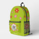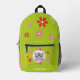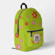 Green backpack for girls with red and pink flowers and your own photo