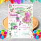 Adorable kids baking birthday party invitation. Baking birthday party invite with mint green and pink.