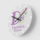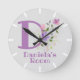 Kids Bedroom Clock. Design features Monogram & Name with Flowers either side in a water colour pastel style. Example name is Daniela. Change name as desired for anyone with a name beginning with D.