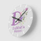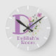 Kids Bedroom Clock. Design features Monogram & Name with Flowers either side in a water colour pastel style. Example name is Delilah. Change name as desired for anyone with a name beginning with D.