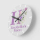Design features Monogram & Name with Flowers either side in a water colour pastel style. Example name is Henrietta. Kids Bedroom Clock. Change name as desired for anyone with a name beginning with H.