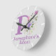 Childs Bedroom Clock. Design features Monogram & Name with Flowers either side in a water colour pastel style. Example name is Persephone. Kids Bedroom Clock. Change name as desired for anyone with a name beginning with P.