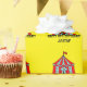 Kids Birthday party carnaval theme circus tent wrapping paper. Colourful yellow gift wrap for children. Add your own personalised name and age. Gender neutral design for boys and girls. Also nice for themed baby shower.