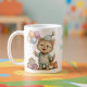 This charming mug features an adorable kitten dressed in a tender pajama and hat, holding colorful balloons and surrounded by small gifts, creating a sweet and festive scene. Its watercolor-style design, with soft tones and delicate details, makes it the perfect gift for children's birthdays or to surprise someone special. Ideal for enjoying hot drinks while adding a touch of joy and tenderness to the day. YOU CAN CHANGE THE SIZE AND STYLE OF THE MUG