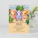 Dive into the world of dinosaurs at our Dino Delight party! Join us for an adventure in celebration of [Child's Name] turning [age]. The adorable design features three cute dinosaurs surrounded by palm trees, setting the stage for a roaring good time. Easily personalise the details like name, age, date, and address for a unique touch. The vibrant colours and playful atmosphere make this invitation perfect for your little one's big day. Don't miss out on the Jurassic joy – order now and let the prehistoric party palooza begin!