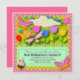 A great invitation for party in the backyard or in the park. Lots of flowers, butterflies, dragonfly, balloons and a delicious cupcake.
