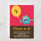 An illustration of a blue kooky monster with a balloon. This fun birthday invitation will be perfect for kids birthday parties.