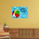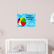 Child's birthday party banner featuring swimming pool and beach ball. To personalise, edit text. Matching decorations and party favours available to create a fun birthday theme for any pool or swimming party.