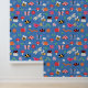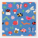 Bright and cheerful kids’ wallpaper featuring cute bugs, bees, ladybirds, flowers and butterflies on a bold blue background — perfect for nursery or playroom walls.