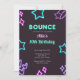 If you're looking for a unique and eye-catching birthday party invitation, this is it! With the neon pink, blue, and purple colour palette featuring stars and hearts, it's perfect for a bounce or jump party theme for girls! This editable and printable template is available as a digital download.