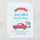 This adorable hand drawn car birthday invitation has a nice retro charm. All details are customisable.