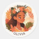 Kids cartoon hawaiian girl. Floral tropical lei Classic Round Sticker