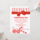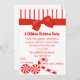 Sweet Christmas party invitation, done in red and white, with graphics of holiday candy and a big red ribbon and bow. Personalise the text to suit your party needs for the holidays. Very cute for children holiday parties.