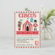 This children's circus birthday party invitation features a circus tent, ring master, preforming bear, drawn word, popcorn and banner. The text area is beige with a porpoise blue outline and the border consists of a beige and red stripe pattern. I wanted to create a new circus theme collection for the store because it has been a popular theme in the past and fun to design. Same design invitation with photo area is available at the store. This children's circus birthday party invitation is suitable for a girl's or boy's party. It's ready to personalize.