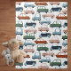 Add a fun touch to your home decor with this adorable kids retro car theme pattern. Cars and trucks are red, green, pink, and blue and are perfect for boys and girls. Makes a great birthday present for any little vehicle lover!