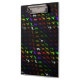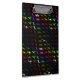 Multicolored clipboard with a rainbow dinosaur pattern. Colourful t rex, triceratops, pterodactyl, gallimimus, and diplodocus.