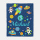 Kids Custom Name Outer Space Rocket Ship Fleece Blanket