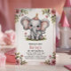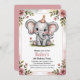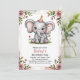 Kids Cute Pink Elephant 4th Birthday Party Invitation
