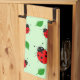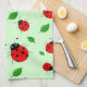 Kids Cute Red ladybug and green leave on gradient Tea Towel