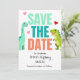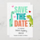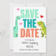 Get ready to roar! This charming "SAVE THE DATE" card is the perfect way to announce your little one's upcoming dinosaur-themed birthday party.