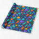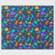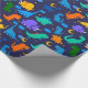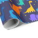 Kids Dinosaurs At Night Blue Orange Green Pattern Wrapping Paper