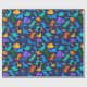 Kids Dinosaurs At Night Blue Orange Green Pattern Birthday Wrapping Paper for a dinosaur-themed birthday party. www.SamAnnDesigns.com
