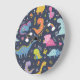 Kids Dinosaurs: Colourful Vintage Pattern Large Clock