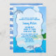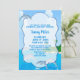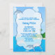 Kids Dolphin Splash Birthday Party Invitations with dolphins swimming in blue water on a tropical island. The perfect invitation for a dolphin themed birthday party.