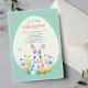 Make Easter unforgettable with this beautiful spring floral invitation. The design features a cute bunny and watercolor flowers, colourful eggs and cute pink butterflies, making it both stylish and charming. Use the design tools to customise the text. Also available as digital download.