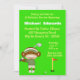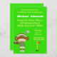 Golf Birthday Invitations with a sock monkey swinging a golf club. Design has golf ball headed for a hole in one. Customise with your party details.Kristiw