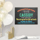 Celebrate your child's achievement and make them feel extra special with a cute personalized 18"x24" graduation poster. All text is simple to customize for kindergarten, preschool, or any elementary grade. Include name, class year, school, honors, inspirational quote, or other text of your choice. TO CHANGE TEXT COLORS, SEE INSTRUCTIONS BELOW. The colorful design features a black faux chalkboard background, white outline mortar board cap, and stylish modern typography in orange, teal green, yellow, and blue. Gender neutral colors are suitable for a girl or boy. This graduation party sign is an elegant way to celebrate a kid's special day. Congratulations to the graduate!