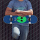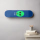 Show your moves on this Kid's Green Alien Personalised Kids skateboard. It is designed with a bright green alien head sticking out his tongue on the centre of customisable bright blue background. Name is in bold white lettering. Makes a great gift idea for science fiction, outer space and UFO lovers. Click personalise template option and enter name.