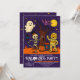 Bring the magic of Halloween to life with this adorable kids’ party invitation! Featuring a smiling ghost, dancing skeleton, playful mummy, and a cheerful bat under the starry night sky, this design is perfect for children’s Halloween celebrations. Bright, colourful, and spooky-but-cute, it sets the perfect tone for trick-or-treat fun. Parents will love how easy it is to personalise, and kids will be excited to receive such a festive card. Great for classrooms, neighbourhood parties, or family gatherings.
