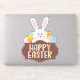 Kid's Fun Happy Easter, Colourful & Decorative Eggs With A Cute White Bunny Holding A Sign Holiday Sticker.